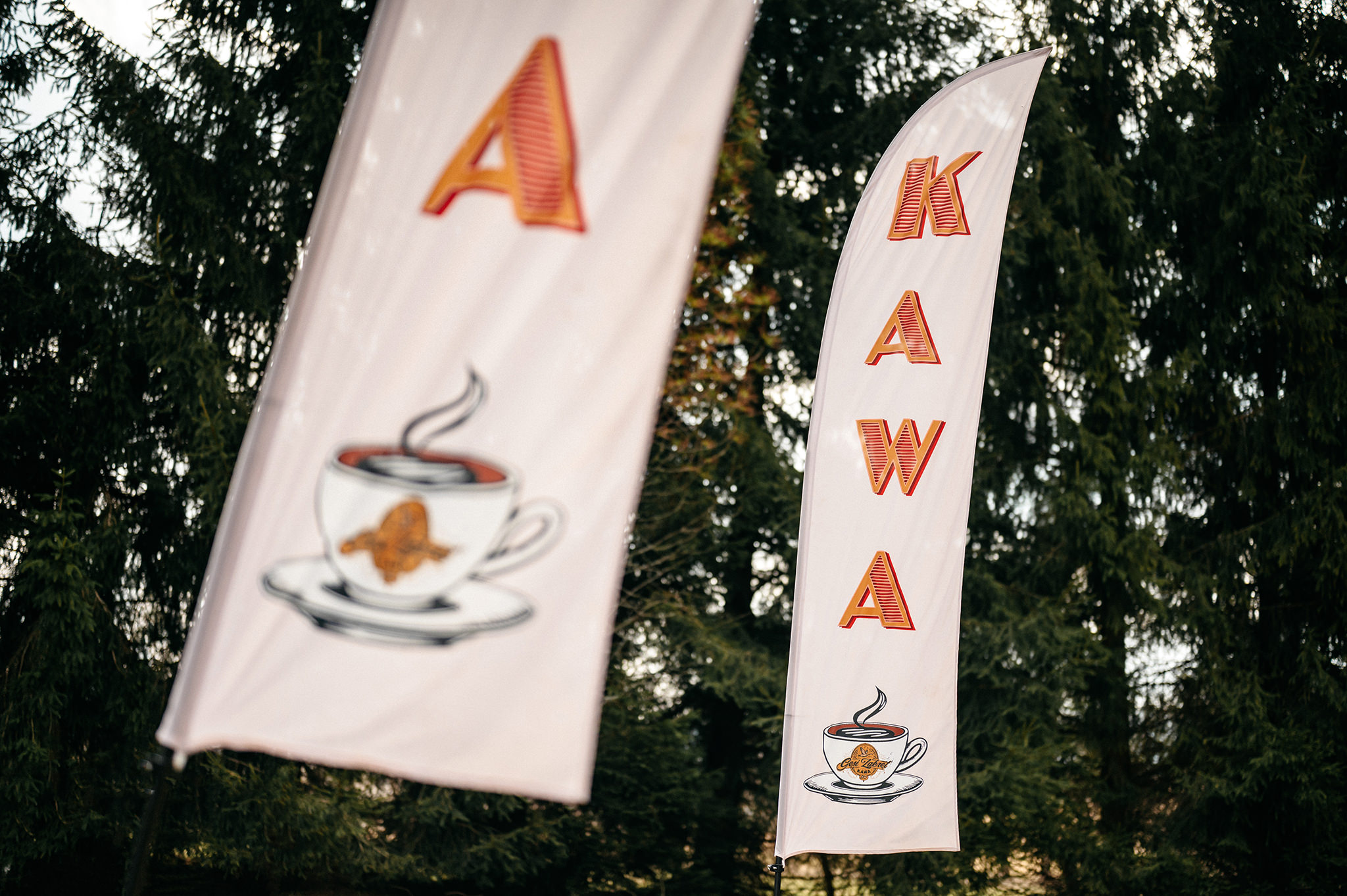 Jeśli przy bramie widzisz flagę z napisem „KAWA” oznacza to, że tego dnia działamy kawowo i zapraszamy.
